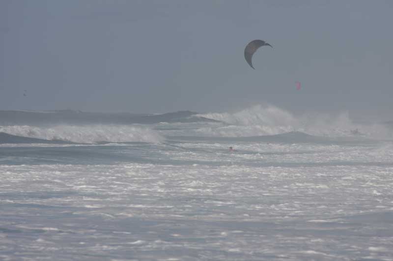 Even kite surfers are out in the turmoil just east of Pipeline.