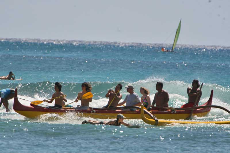 of this outrigger canoe, riding the surf on Waikiki Beach. If you're