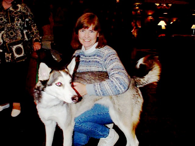 Mary with Zuma, the husky that writes a column found on the Iditarod
