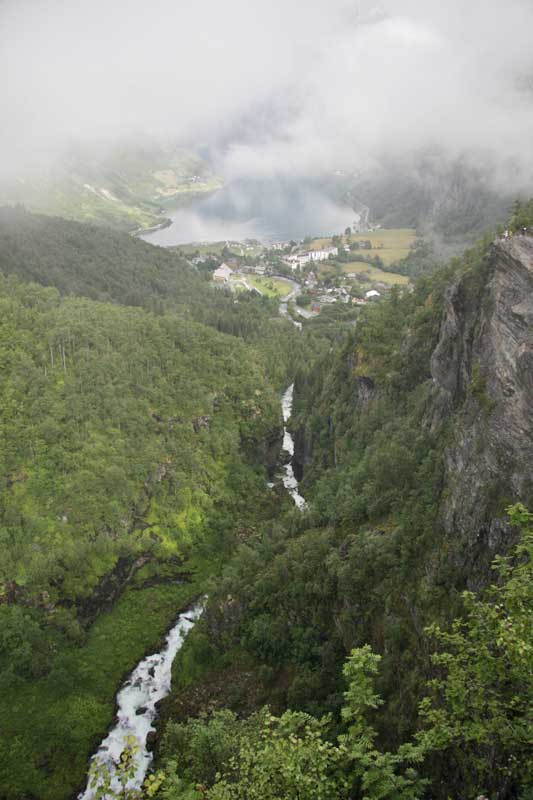 above sea level and the depth of the fjord is 960 feet. At the end of the fjord is the village of Geiranger.