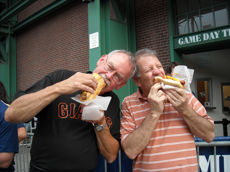 Now this is baseball ... munching on a dog outside the park with a local friend.