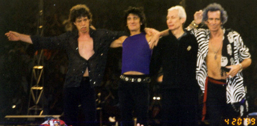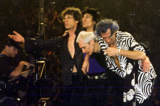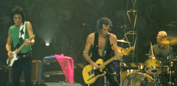 The Stones came down a ramp toward the center of the San Jose Arena,