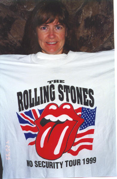 My wife, Mary, as we celebrate our 5th-row seats at the Stones concert.